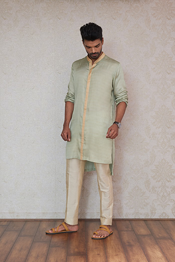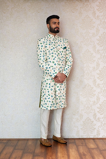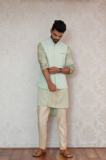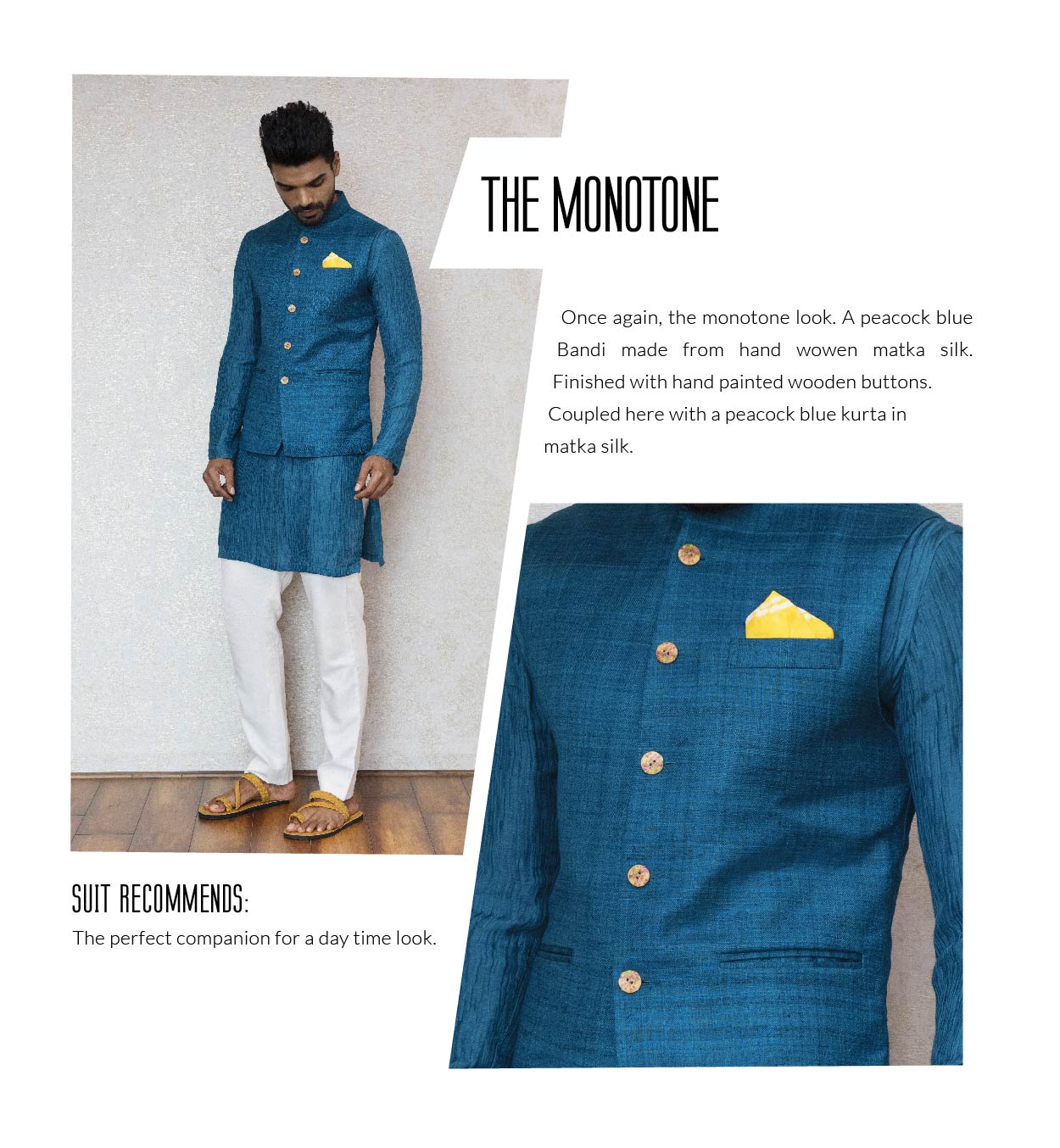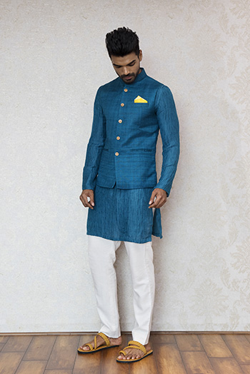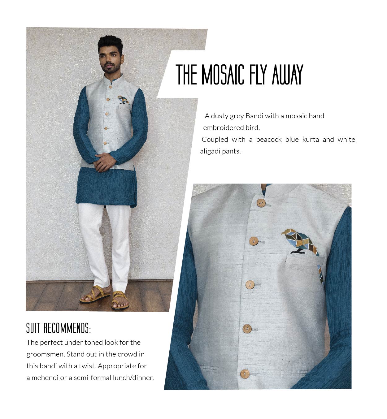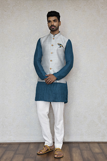 In the recent light of festivities, we have launched our collection “Regalia” which focuses on Indian menswear silhouettes. We have styles for everyone, ranging from Diwali to weddings, from groom to his family and friends. Our brand doesn’t believe in overpowering clothing, but subtle undertones which creates an overpowering presence. Our collection is specially handcrafted and has unique surface ornamentation techniques which are refreshing change from traditional golden embroideries. It is colourful yet subtle at the same time. Our collection resonates to its name; it’s royal and elegant yet contemporary at the same time.