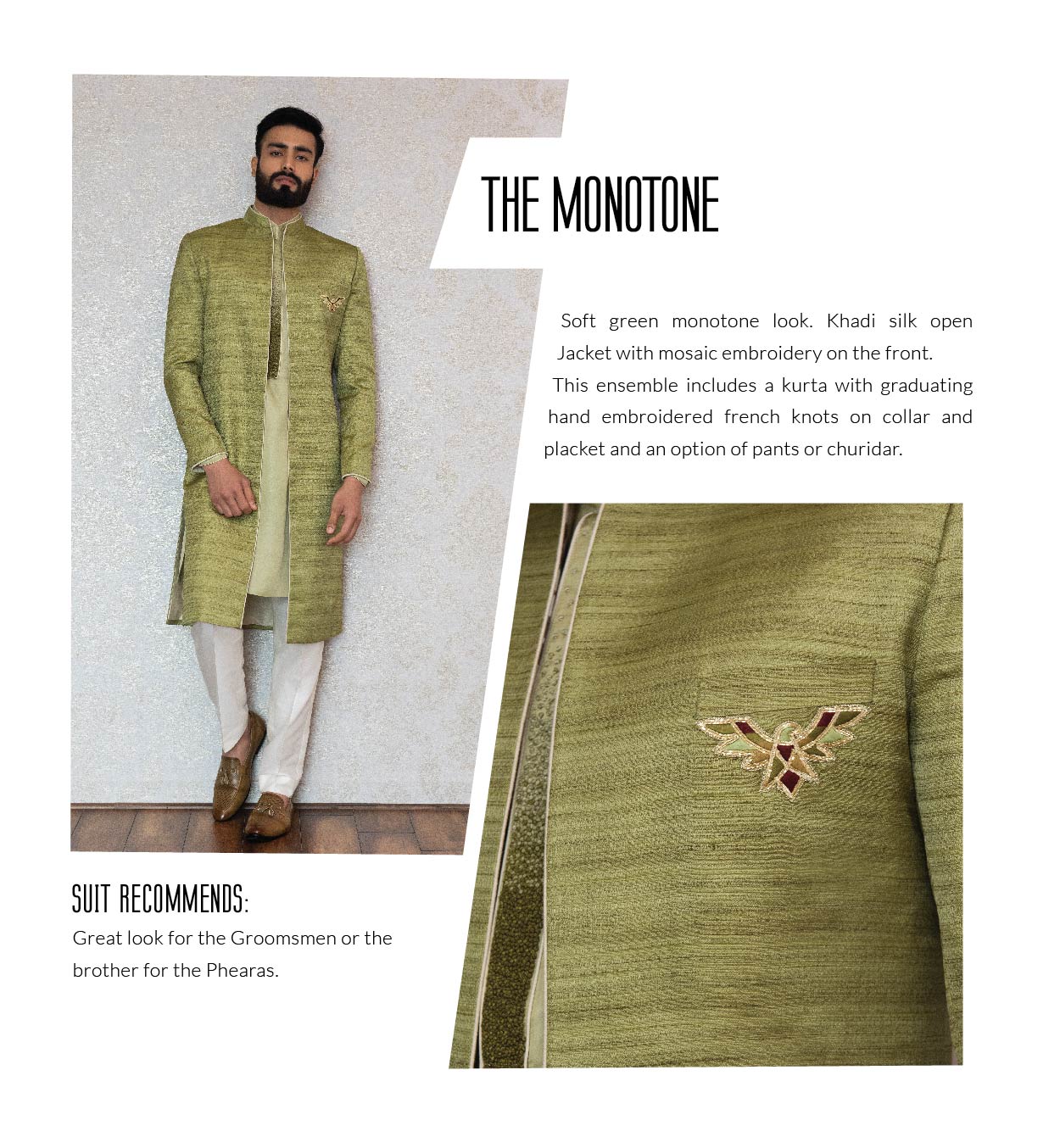 Your one stop shop for all wedding needs. Weddings are the biggest decisions made once in a lifetime, and we help you dress your best. Whether you’re a groom, groomsman or the family, the Shaadi lookbook ensures everyone is dressed to kill for every occasion, be it the engagement, sangeet or the wedding ceremony.